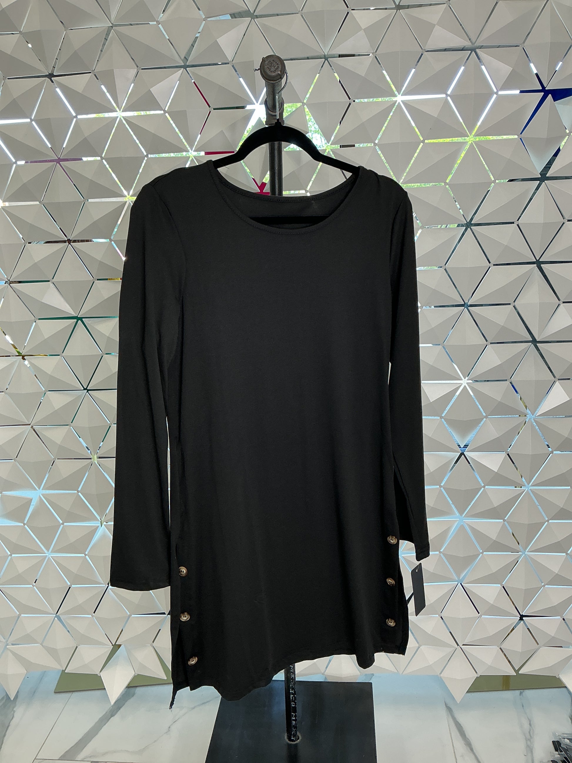 This split hem dress features a button closure for a polished and effortless look. Made with high-quality materials, it offers both comfort and style. Perfect for any occasion, this dress will elevate your wardrobe with its versatile design.
